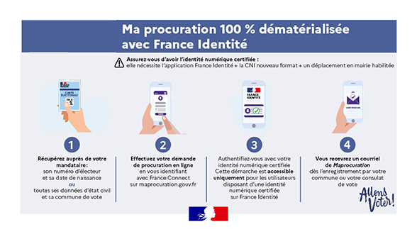Le jour de l’élection, le mandataire doit se rendre dans le bureau de vote de la personne qui lui a donné procuration, muni de sa propre pièce d'identité.